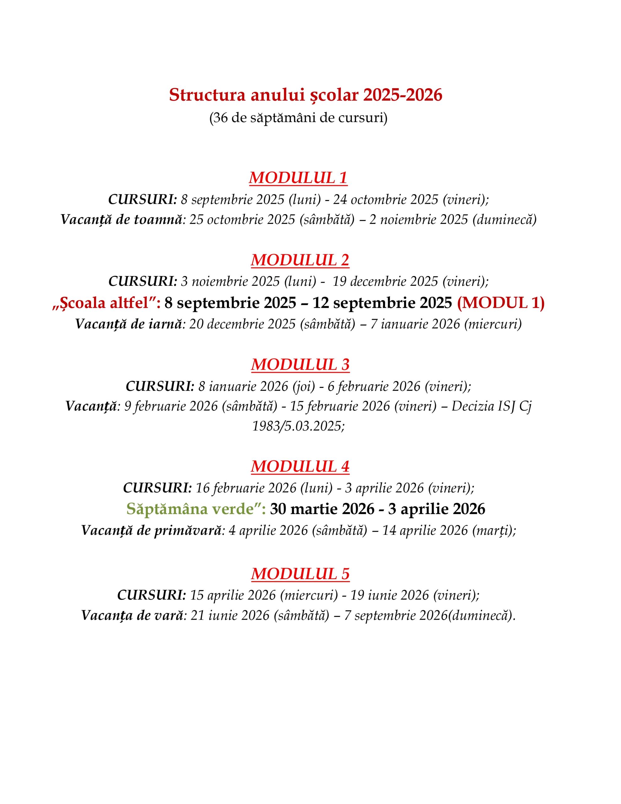 • Structura an scolar 2025-2026